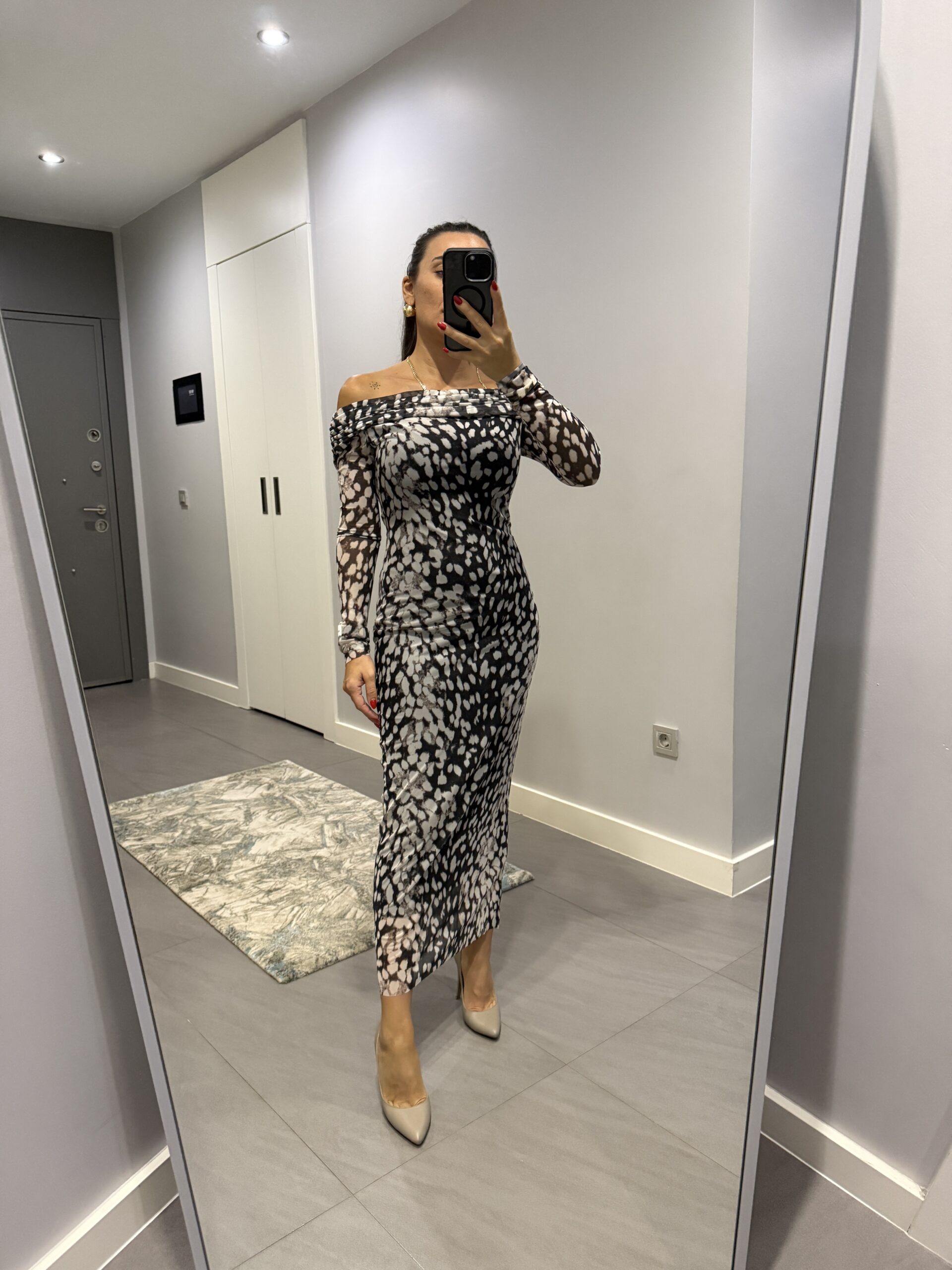 ŞİFON İÇİ ASTARLI KAYIK YAKA ELBİSE
