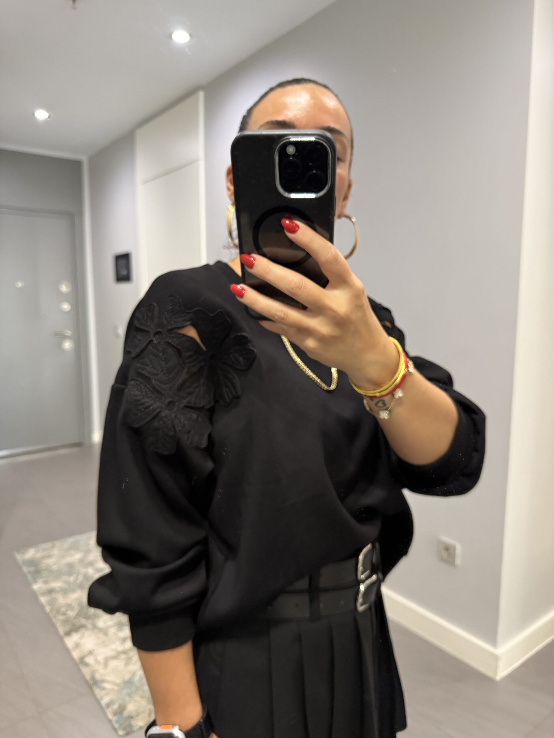 OMZU ÇİÇEK DETAYLI TASARIM SWEAT
